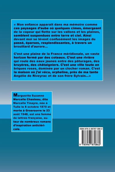 « Mon enfance apparaît dans ma mémoire comme ces paysages d’aube où quelques cimes, émergeant de la vapeur qui flotte sur les vallons et les plaines, semblent suspendues entre terre et ciel. Ainsi devant moi se lèvent confusément les images du passé, éparses, resplendissantes, à travers un brouillard d’aurore… C’est une plaine de la France méridionale, un vaste horizon fermé par des coteaux. C’est une rivière qui roule des eaux jaunes entre des pâturages, des bruyères, des châtaigniers. C’est une ville toute en briques roses, dominée par un clocher roman. C’est la maison où j’ai vécu, orpheline, près de ma tante Angélie de Riveyrac et de son frère Sylvain...»