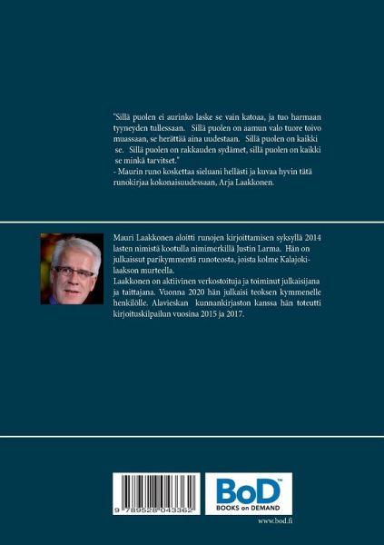 Hellästi sieluani kosketa on kooste sisareni Arja Laakkosen runovalinnoista, jotka hän sanoo valinneensa sielun peilin kautta. Valinnat ovat vuoden 2020 aikana kirjoitetuista lähes 800 runon kokoelmasta, joka kantaa nimeä Viljalti sanoja tuhlaan. "Sillä puolen ei aurinko laske se vain katoaa, ja tuo harmaan tyyneyden tullessaan. Sillä puolen on aamun valo tuore toivo muassaan, se herättää aina uudestaan. Sillä puolen on kaikki se. Sillä puolen on rakkauden sydämet, sillä puolen on kaikki se minkä tarvitset." - Maurin runo koskettaa sieluani hellästi ja kuvaa hyvin tätä runokirjaa kokonaisuudessaan, Arja Laakkonen.