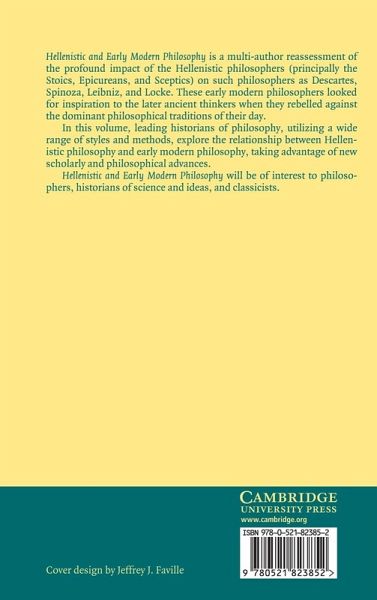 Early modern philosophers looked for inspiration to the later ancient thinkers when they rebelled against the dominant Platonic and Aristotelian traditions. The impact of the Hellenistic philosophers (principally the Stoics, Epicureans and Skeptics) on such philosophers as Descartes, Leibniz, Spinoza and Locke was profound and is ripe for reassessment. This collection of essays offers precisely that. Leading historians of philosophy explore the connections between Hellenistic and early modern philosophy in ways that take advantage of new scholarly and philosophical advances. The essays display a challenging range of methods and will be an invaluable point of reference for philosophers, historians of ideas and classicists.