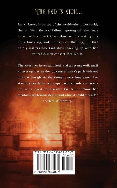 The end is nigh... Lana Harvey is on top of the world-the underworld, that is. With the war fallout tapering off, she finds herself reduced back to mundane soul harvesting. It's not a fancy gig, and the pay isn't thrilling, but that hardly matters now that she's shacking up with her retired demon consort, Beelzebub. The afterlives have stabilized, and all seems well, until an average day on the job crosses Lana's path with not one but two ghosts she thought were long gone. The startling revelation rips open old wounds and sends her on a quest to discover the truth behind her mentor's…mehr