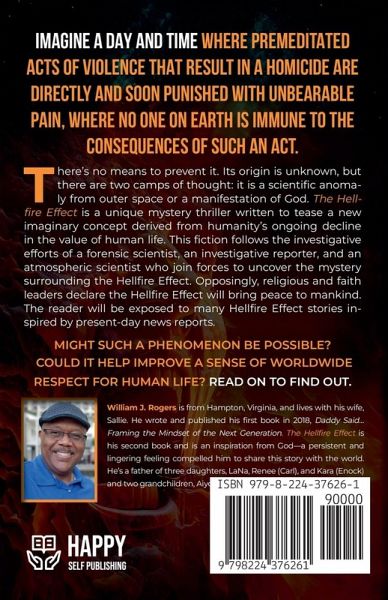 Imagine a day and time where premeditated acts of violence that result in a homicide are directly and soon punished with unbearable pain, where no one on Earth is immune to the consequences of such an act. There's no means to prevent it. Its origin is unknown, but there are two camps of thought: it is a scientific anomaly from outer space or a manifestation of God. The Hellfire Effect is a unique mystery thriller written to tease a new imaginary concept derived from humanity's ongoing decline in the value of human life. This fiction follows the investigative efforts of a forensic scientist, an investigative reporter, and an atmospheric scientist who join forces to uncover the mystery surrounding the Hellfire Effect. Opposingly, religious and faith leaders declare the Hellfire Effect will bring peace to mankind. The reader will be exposed to many Hellfire Effect stories inspired by present-day news reports. Might such a phenomenon be possible? Would it help restore a sense of worldwide respect for human life? Read on to find out.