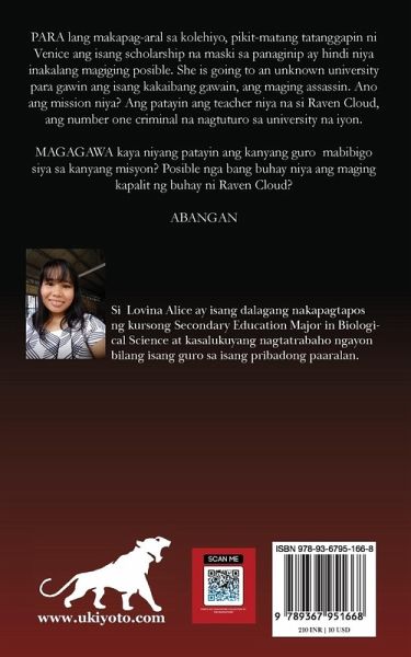PARA lang makapag-aral sa kolehiyo, pikit-matang tatanggapin ni Venice ang isang scholarship na maski sa panaginip ay hindi niya inakalang magiging posible. She is going to an unknown university para gawin ang isang kakaibang gawain, ang maging assassin. Ano ang mission niya? Ang patayin ang teacher niya na si Raven Cloud, ang number one criminal na nagtuturo sa university na iyon.MAGAGAWA kaya niyang patayin ang kanyang guro mabibigo siya sa kanyang misyon? Posible nga bang buhay niya ang maging kapalit ng buhay ni Raven Cloud? ABANGAN