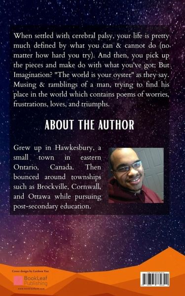 When settled with cerebral palsy, your life is pretty much defined by what you can & cannot do (no matter how hard you try). And then, you pick up the pieces and make do with what you've got; But Imagination? "The world is your oyster" as they say. Musing & ramblings of a man, trying to find his place in the world which contains poems of worries, frustrations, loves, and triumphs.