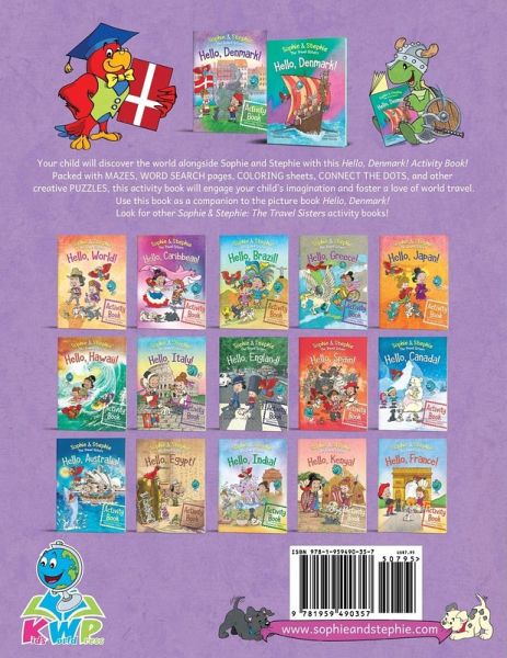 Unleash Your Child's Inner Explorer with Viking Adventures in Denmark! Ready for an exciting journey to the land of Vikings, castles, and fairy tales? Hello, Denmark! Activity Book invites your child to embark on a playful exploration of one of the world's most fascinating countries. Guided by Sophie and Stephie, the Travel Sisters, kids ages 4-8 will uncover the wonders of Denmark through engaging, hands-on activities designed to entertain, educate, and inspire.What's Inside This Fun-Filled Activity Book: Navigate thrilling mazes to uncover hidden Viking treasures. Solve a word search inspired by Denmark's history and culture. Bring Denmark's landscapes to life with coloring pages of castles, Vikings, and more. Complete exciting connect-the-dots puzzles to reveal iconic landmarks. Enjoy a mix of creative games and challenges perfect for little adventurers. Why Kids Love It: Introduces Viking lore and Danish culture in a fun and approachable way. Encourages creativity, problem-solving, and imagination. Provides a screen-free, travel-inspired learning experience. Perfect for at-home activities, road trips, or classroom enrichment. Explore More Adventures!Pair this activity book with the picture book Hello, Denmark! and join Sophie and Stephie on even more adventures. Don't forget to collect all the Sophie & Stephie The Travel Sisters Activity Books to spark your child's wanderlust!Adventure awaits! Get your copy of Hello, Denmark! Activity Book today and start exploring the land of Vikings and fairy tales!