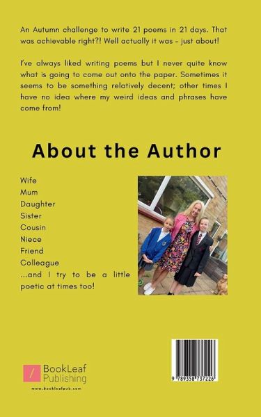 An Autumn challenge to write 21 poems in 21 days. That was achievable right?! Well actually it was - just about! I've always liked writing poems but I never quite know what is going to come out onto the paper. Sometimes it seems to be something relatively decent; other times I have no idea where my weird ideas and phrases have come from!