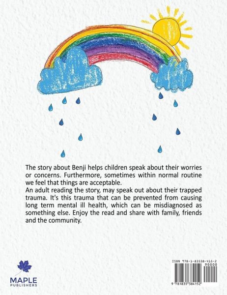 This story about Benji is to prevent on-going safeguarding issues. These issues create emotional issues that return as physical issues too. As adults the story may highlight issues that were never spoken about. The book may help with trapped trauma and identifying perpetrators.