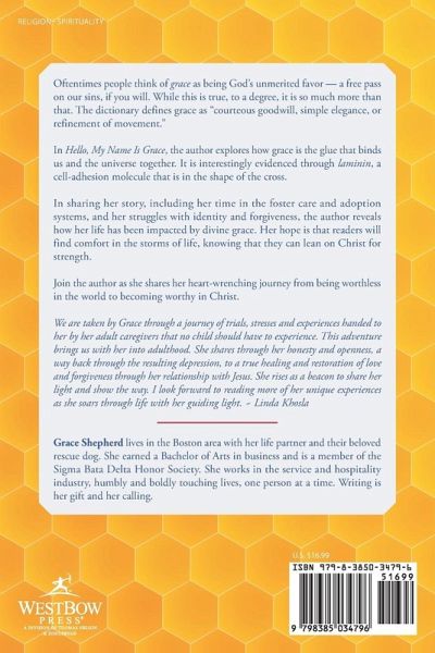What if grace wasn't just about forgiveness, but the sacred force holding your identity together? In Hello, My Name Is Grace, a poignant Christian memoir, one woman traces her journey from shame and abandonment to healing and sacred purpose. Born into secrecy and placed into foster care, her life unfolds through a series of emotional trials: adoption, identity loss, abuse, and depression. Yet through it all, one truth emerges: divine grace is not just a gift. It is a transformation. More than a theological concept, grace becomes tangible through moments of spiritual revelation, supernatural signs, and the author's growing relationship with Christ. From the scientific symbolism of laminin-a molecule that remarkably resembles the shape of a cross-to the power of forgiveness and redemption, this story explores how grace binds the universe, and each of us, together. Blending raw personal narrative, biblical insight, and a fierce longing for truth, Hello, My Name Is Grace speaks to adoptees, trauma survivors, and faith seekers alike. With deep vulnerability, the author shares how God renamed her, restored her, and revealed her worth beyond what the world had stolen. If you have ever felt unwanted, unloved, or unsure of who you are, this memoir will help you rediscover that you are seen, you are held, and you are named by grace. Read Hello, My Name Is Grace and reclaim your story through the eyes of God. "We are taken by Grace through a journey of trials, stresses and experiences handed to her by her adult caregivers that no child should have to experience. This adventure brings us with her into adulthood. She shares through her honesty and openness, a way back through the resulting depression, to a true healing and restoration of love and forgiveness through her relationship with Jesus. She rises as a beacon to share her light and show the way. I look forward to reading more of her unique experiences as she soars through life with her guiding light." ~ Linda Khosla