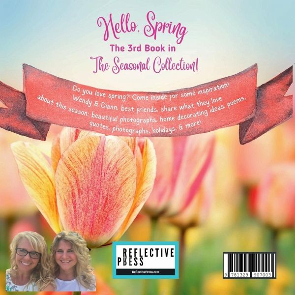 Hello, Spring! Do you love spring? Ready to be inspired? Join Wendy and Diann, best friends, who share what they love about this lovely season: inspiring home decorating ideas, meaningful poems and quotes, beautiful photographs, holiday pictures and ideas, tips for spring cleaning, and much more! This 100 page book is a visual feast for your eyes! You'll want a copy for your coffee table and one for your best friend! This is the 3rd book in The Seasonal Collection by Wendy and Diann. If you also love the four seasons, you'll want to check out Hello, Autumn and Hello, Winter as well! Watch for Hello, Summer to be released by summer 2023!