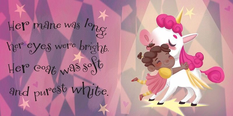 This charming board book features a simple story about a popular magical animal: unicorns. "Her mane was long, her eyes were bright. Her coat was soft and purest white." The brightly colored, cheerful artwork and simple, rhyming text in this board book will mesmerize young children and stimulate their early literacy development.