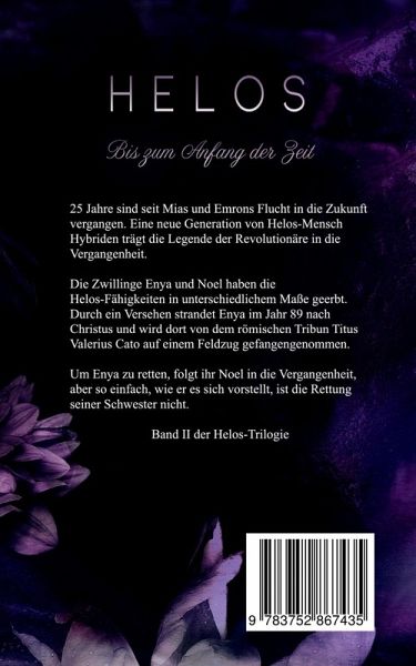 25 Jahre sind seit Mias und Emrons Flucht in die Zukunft vergangen. Eine neue Generation von Helos-Mensch Hybriden trägt die Legende der Revolutionäre in die Vergangenheit.Die Zwillinge Enya und Noel haben die Helos-Fähigkeiten in unterschiedlichem Maße geerbt. Durch ein Versehen strandet Enya im Jahr 89 nach Christus und wird dort von dem römischen Tribun Titus Valerius Cato auf einem Feldzug gefangengenommen. Um Enya zu retten, folgt ihr Noel in die Vergangenheit, aber so einfach, wie er es sich vorstellt, ist die Rettung seiner Schwester nicht.Band II der Helos-Trilogie