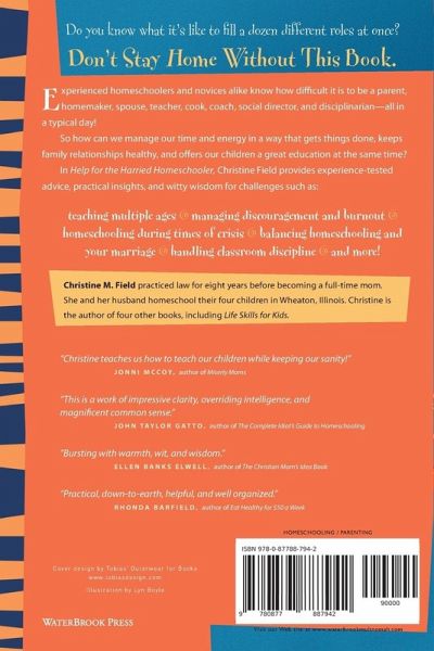 Homeschooling moms and dads can be overwhelmed by the demands on their time. Between their children's educational needs; their roles as spouse, parent, and more; and their own individual desires and goals, these mothers and fathers struggle to accomplish all that must be done. In Help for the Harried Homeschooler, experienced homeschooler, author, and mother of four Christine Field offers sound advice for parents who want not only to achieve homeschooling success but also to reach a balance in their lives.