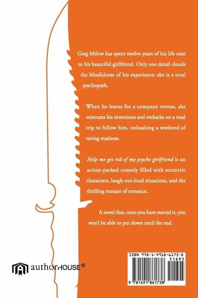 Greg Milow has spent twelve years of his life next to his beautiful girlfriend. Only one detail clouds the blissfulness of his experience: she is a total psychopath. When he leaves for a company retreat, she mistrusts his intentions and embarks on a road trip to follow him, unleashing a weekend of raving madness. Help me get rid of my psycho girlfriend is an action-packed comedy filled with eccentric characters, laugh-out-loud situations, and the thrilling menace of romance. A novel that, once you have started it, you won't be able to put down until the end.