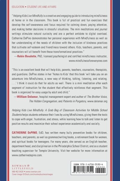 Helping Kids Live Mindfully: A Grab Bag of Classroom Activities for Middle School Students helps students enhance their lives by using Mindfulness, giving them the tools to cope with anger, frustration, and stress, while learning how to talk and listen to get positive results and maximize their school experience academically and socially.