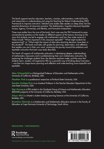 This book supports mathematics educators in understanding and using the Teaching for Robust Understanding (TRU) Framework, using case studies to explore its five dimensions of classroom practice. Readers will be able to both think deeply about their own teaching and foster mathematically powerful thinkers in their classroom.