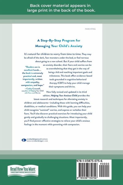 This fully revised and updated third edition of the classic self-help guide for parents offers readers cutting-edge, proven-effective strategies-including cognitive behavioral therapy (CBT), exposure therapy, and mindfulness and relaxation techniques-for helping their child overcome anxiety and thrive. This new edition also includes information on helping young children and adolescents; as well as children with behavioral problems, learning difficulties, or medical conditions.