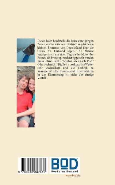 Dieses Buch beschreibt die Reise eines jungen Paares, welches mit einem elektrisch angetriebenen kleinen Trimaran von Deutschland über die Ostsee bis Finnland segelt. Die Abreise verzögert sich um einen Tag, da der Motor des Bootes, ein Prototyp, noch fertiggestellt werden muss. Dann läuft scheinbar alles nach Plan? Oder doch nicht? Die Zeit ist zu kurz, das Wetter sehr wechselhaft und die Technik zu unausgereift... Ein Stromausfall in den Schären in der Dämmerung ist nicht der einzige Vorfall...