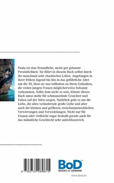 Paula ist eine freundliche, meist gut gelaunte Persönlichkeit. Sie führt in diesem Buch selbst durch ihr manchmal sehr chaotisches Leben. Angefangen in ihrer frühen Jugend bis hin in das gefährliche Alter um die 30, lässt sie uns teilhaben an ihren Gedanken, die vielen jungen Frauen möglicherweise bekannt vorkommen. Sollte dem nicht so sein, könnte dieses Buch umso mehr für schmunzelnde Gesichter und Falten auf der Stirn sorgen. Natürlich geht es um die Liebe, die alles verändernde große Liebe und aber auch die kleinen und größeren zwischenmenschlichen Verwirrungen und Verwicklungen. Nicht nur für Frauen oder vielleicht sogar deshalb gerade auch für das männliche Geschlecht sehr aufschlussreich.