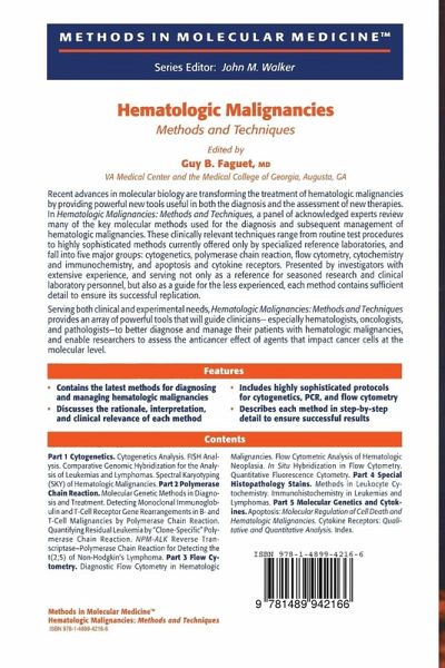 "Serving both clinical and experimental needs, Hematologic Malignancies: Methods and Techniques, provides an array of powerful tools that will guide clinicians - especially hematologists, oncologists, and pathologists - to better diagnose and manage their patients with hematologic malignancies, and enable researchers to assess the anticancer effect of agents that impact cancer cells at the molecular level." -Tumori