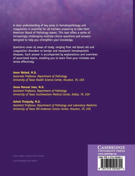 A clear understanding of key areas in hematopathology, hematology and coagulation is essential for all trainees preparing to take their American Board of Pathology exams. This text offers a series of increasingly challenging multiple-choice questions and answers designed to help strengthen your knowledge. Question papers cover all areas of study, from red blood cell count and coagulation disorders to hematopoietic neoplasms. Each answer is accompanied by explanations and overviews of associated topics, enabling you to learn from mistakes and to revise effectively.