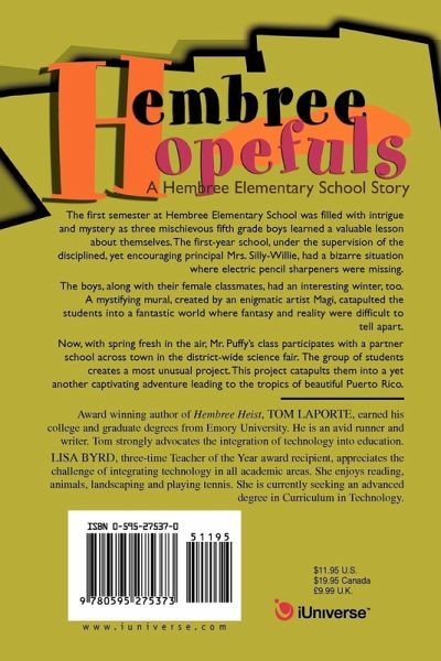 The first semester at Hembree Elementary School was filled with intrigue and mystery as three mischievous fifth grade boys learned a valuable lesson about themselves. The first-year school, under the supervision of the disciplined, yet encouraging principal Mrs. Silly-Willie, had a bizarre situation where electric pencil sharpeners were missing. The boys, along with their female classmates, had an interesting winter, too. A mystifying mural, created by an enigmatic artist Magi, catapulted the students into a fantastic world where fantasy and reality were difficult to tell apart. Now, with spring fresh in the air, Mr. Puffy's class participates with a partner school across town in the district-wide science fair. The group of students creates a most unusual project. This project catapults them into a yet another captivating adventure where their writing and reasoning skills will be significantly challenged.