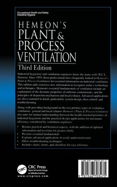 Have a well-thumbed, dog-eared copy of Hemeon's Plant & Process Ventilation? Now is the best time to retire it in favor of this revised-and respectful-edition. Those who are new to Hemeon's approach will discover what other professionals have known more than 40 years: Hemeon offers some of the most effective ways to control environmental contaminates through proper ventilation techniques.
