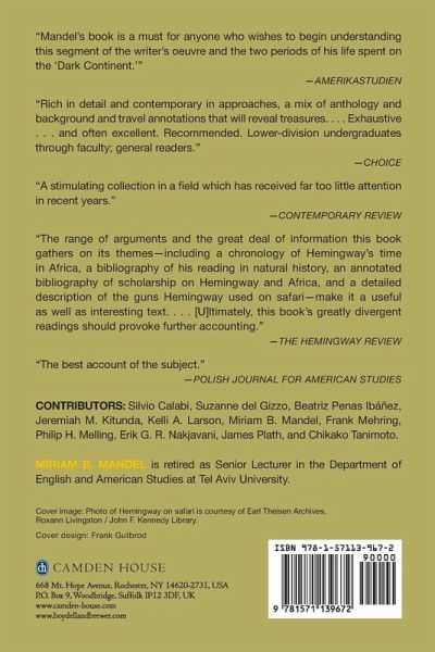 Hemingway's two extended African safaris, the first in the 1930s and the second in the 1950s, gave rise to two of his best-known stories ("The Snows of Kilimanjaro" and "The Short Happy Life of Francis Macomber"), a considerable amount of journalism and correspondence, and two nonfiction books, Green Hills of Africa (1935), about the first safari, and True at First Light (1999; longer version, Under Kilimanjaro 2005), about the second. Africa also figures largely in his important posthumous novel The Garden of Eden (1986). The variety and quantity of this literary output indicate clearly that Africa was a major factor in the creative life of this influential American author. But surprisingly little scholarship has been devoted to the role of Africa in Hemingway's life and work. To start the long-delayed conversation on this topic, this book offers historical, theoretical, biographical, theological, and literary interpretations of Hemingway's African narratives. It also presents a wide-ranging introduction, a detailed chronology of the safaris, a complete bibliography of Hemingway's published and unpublished African works, an up-to-date, annotated review of the scholarship on the African works, and a bibliography of Hemingway's reading on natural history and other topics relevant to Africa and the world of the safari. CONTRIBUTORS: Silvio Calabi, Suzanne del Gizzo, Beatriz Penas Ibáñez, Jeremiah M. Kitunda, Kelli A. Larson, Miriam B. Mandel, Frank Mehring, Philip H. Melling, Erik G. R. Nakjavani, James Plath, and Chikako Tanimoto. MIRIAM B. MANDEL is retired as Senior Lecturer in the Department of English and American Studies at Tel Aviv University.