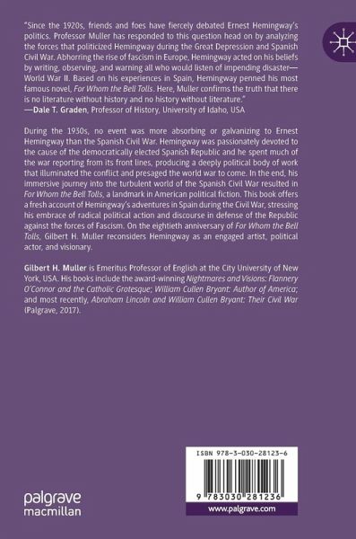 During the 1930s, no event was more absorbing or galvanizing to Ernest Hemingway than the Spanish Civil War. Hemingway was passionately devoted to the cause of the democratically elected Spanish Republic and he spent much of the war reporting from its front lines, producing a deeply political body of work that illuminated the conflict and presaged the world war to come. In the end, his immersive journey into the turbulent world of the Spanish Civil War resulted in For Whom the Bell Tolls, a landmark in American political fiction. This book offers a fresh account of Hemingway's adventures in Spain during the Civil War, stressing his embrace of radical political action and discourse in defense of the Republic against the forces of Fascism. On the eightieth anniversary of For Whom the Bell Tolls, Gilbert H. Muller reconsiders Hemingway as an engaged artist, political actor, and visionary.