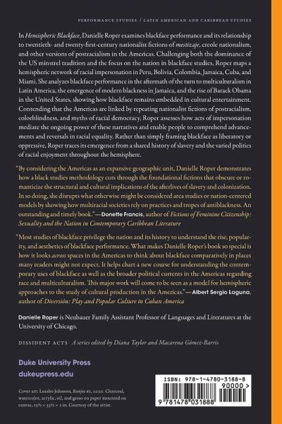 Danielle Roper examines blackface performance and its relationship to twentieth- and twenty-first-century nationalist fictions of mestizaje, creole nationalisms, and other versions of postracialism in the Americas.