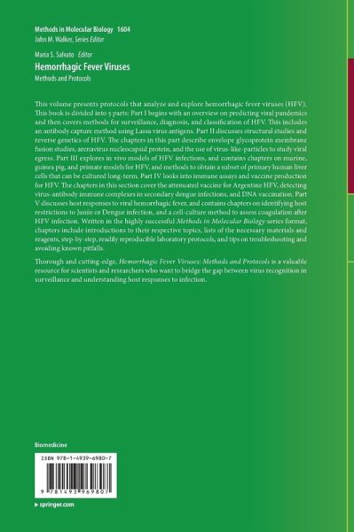 Thorough and cutting-edge, Hemorrhagic Fever Viruses: Methods and Protocols is a valuable resource for scientists and researchers who want to bridge the gap between virus recognition in surveillance and understanding host responses to infection.