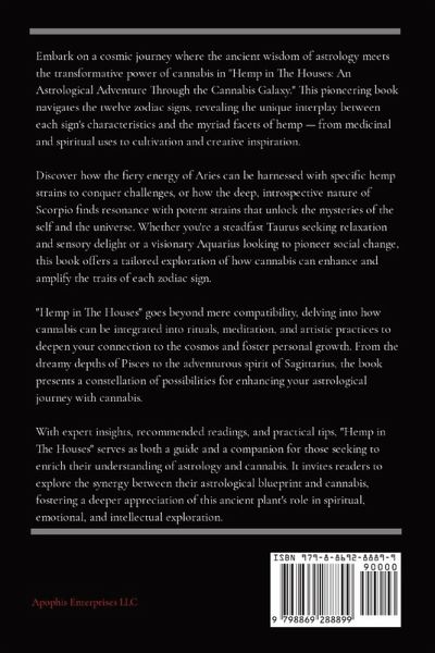 Embark on a cosmic journey where the ancient wisdom of astrology meets the transformative power of cannabis in "Hemp in The Houses: An Astrological Adventure Through the Cannabis Galaxy." This pioneering book navigates the twelve zodiac signs, revealing the unique interplay between each sign's characteristics and the myriad facets of hemp - from medicinal and spiritual uses to cultivation and creative inspiration. Discover how the fiery energy of Aries can be harnessed with specific hemp strains to conquer challenges, or how the deep, introspective nature of Scorpio finds resonance with potent strains that unlock the mysteries of the self and the universe. Whether you're a steadfast Taurus seeking relaxation and sensory delight or a visionary Aquarius looking to pioneer social change, this book offers a tailored exploration of how cannabis can enhance and amplify the traits of each zodiac sign. "Hemp in The Houses" goes beyond mere compatibility, delving into how cannabis can be integrated into rituals, meditation, and artistic practices to deepen your connection to the cosmos and foster personal growth. From the dreamy depths of Pisces to the adventurous spirit of Sagittarius, the book presents a constellation of possibilities for enhancing your astrological journey with cannabis. With expert insights, recommended readings, and practical tips, "Hemp in The Houses" serves as both a guide and a companion for those seeking to enrich their understanding of astrology and cannabis. It invites readers to explore the synergy between their astrological blueprint and cannabis, fostering a deeper appreciation of this ancient plant's role in spiritual, emotional, and intellectual exploration. Join us on this celestial adventure through the Cannabis Galaxy, where the stars align to illuminate the path to self-discovery, healing, and universal connection. "Hemp in The Houses" is more than a book; it's a gateway to a new dimension of cosmic harmony and earthly wisdom