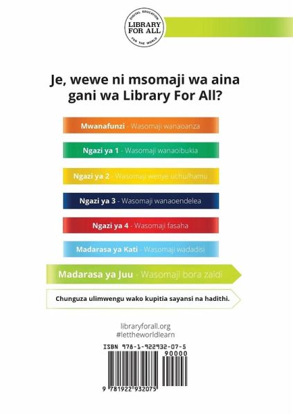 Hen and Eagle once lived together with all birds in peace, but what happens when the Eagle only watches out for themselves? Kuku na Tai wakati fulani waliishi pamoja na ndege wote kwa amani, lakini ni nini kinachotokea wakati Tai anajiangalia tu? Your purchase of this book supports Library For All in its mission to make knowledge available to all, equally.