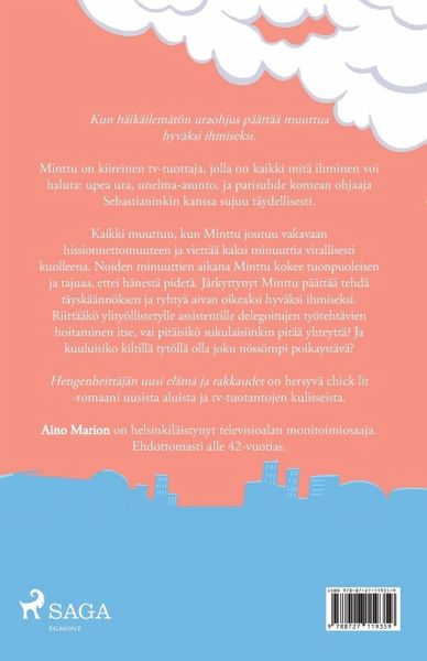 Kun häikäilemätön uraohjus päättää muuttua hyväksi ihmiseksi. Minttu on kiireinen tv-tuottaja, jolla on kaikki mitä ihminen voi haluta: upea ura, unelma-asunto, ja parisuhde komean ohjaaja Sebastianinkin kanssa sujuu täydellisesti. Kaikki muuttuu, kun Minttu joutuu vakavaan hissionnettomuuteen ja viettää kaksi minuuttia virallisesti kuolleena. Noiden minuuttien aikana Minttu kokee tuonpuoleisen ja tajuaa, ettei hänestä pidetä. Järkyttynyt Minttu päättää tehdä täyskäännöksen ja ryhtyä aivan oikeaksi hyväksi ihmiseksi. Riittääkö ylityöllistetylle assistentille delegoitujen työtehtävien hoitaminen itse, vai pitäisikö sukulaisiinkin pitää yhteyttä? Ja kuuluisiko kiltillä tytöllä olla joku nössömpi poikaystävä? Hengenheittäjän uusi elämä ja rakkaudet on hersyvä chick lit -romaani uusista aluista ja tv-tuotantojen kulisseista.