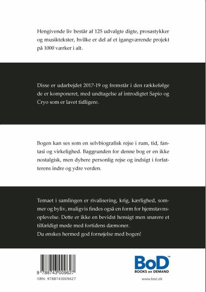 "Hengivende liv" består af 125 udvalgte digte, prosastykker og musiktekster hvilke er del af et igangværende projekt på 1000 værker i alt. Disse er udarbejdet 2017-19 og fremstår i den rækkefølge de er komponeret med undtagelse af introdigtet, Sapio og Cryo som er lavet tidligere. Bogen kan ses som en selvbiografisk rejse i rum, tid fantasi og virkelighed, baggrunden for denne bog er en ikke nostalgisk, men dybere personlig rejse og indsigt i forfatterens indre og ydre verden. Temaet i samlingen er rivalisering, krig, kærlighed, sommer og byliv, muligvis findes også en form for hjemstavnsoplevelse, dette er ikke en bevidst hensigt men snarere et tilfældigt møde med fortidens dæmoner. Du ønskes hermed god fornøjelse med bogen.