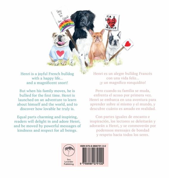 Henri and the Magnificent Snort / Henri y el magnífico ronquidito is for anyone who needs reminding of their own magnificence! This is the story of a little French bulldog named Henri, who is bullied because he snorts. Henri is launched on a journey to learn how lovable he truly is, SNORTS and all. Funded by the Dr. Seuss Foundation, this two-part, bilingual (English and Spanish) children's picture book teaches celebrating differences, recognizing that we all belong, and the importance of treating everyone (ourselves included) with love and kindness. Based on the true story of a famous Frenchie as well as the author's childhood experiences with being bullied, the book is filled with beautiful hand painted illustrations and will enchant readers of all ages. It will leave your heart imprinted with the knowing that - just like Henri - you are loved and magnificent, just as you are. Praise for Henri and the Magnificent Snort Winner of 12 book awards, including the Christopher Award Chosen by PACER's National Bullying Prevention Center as an Elementary Book Club Book. Inspired the funding by the Dr. Seuss Foundation to create the two-part, bilingual (English and Spanish) book to be used in elementary school classrooms and at home to teach bullying prevention "I cried at the ending of this wonderful book! Being a grade schoolteacher since 1978, I have not read a more on target and moving story for children that also speaks to adults. A lot of us have been bullied or know someone who has been bullied, and the resolution in the story for Henri to overcome his shame and then help others was perfect writing... Anyone who has ever had low esteem or ever bullied needs this book to remind them just how beautiful they are; a wonderful lesson taught by a simple story. Bravo! Samantha Childs you are a jewel: keep on writing." - LitPick Book Review "Childs's book is simply a stunning work of children's literature. I cannot say enough about the impact this book will have on young readers. The use of dogs, rhyming text, and an absolutely beautiful collection of touching illustrations make Childs and Farr's book a future classic. Henri and the Magnificent Snort, written by Samantha Childs and illustrated by Hannah Farr, is an invaluable book in bullying education. The lessons about self-confidence, self-worth, and acceptance combine to create a must-have story for elementary classrooms, homeschool programs, and school guidance counselors. I highly recommend Childs and Farr's book to anyone looking for an easy-to-understand, rhyming storyline to help teach young readers how to value themselves and others." - Literary Titan "Expressed poignantly through simple, rhyming verse, the narrative beautifully conveys the reassuring message that we are all lovable despite our differences... A stunner." - Prairies Book Review To learn more about the book (and to see adorable dog photos) visit the book's website at www.HenriandtheMagnificentSnort.com