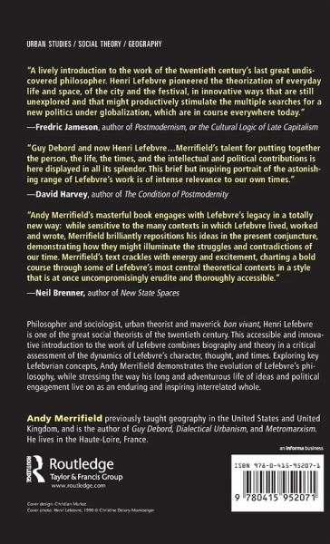 "Andy Merrifield's masterful book engages with Lefebvre's legacy in a totally new way: while sensitive to the many contexts in which Lefebvrelived, worked and wrote, Merrifield brilliantly repositions his ideas in the present conjuncture, demonstrating how they might illuminate the struggles and contradictions of our time. Merrifield's text crackles with energy and excitement, charting a bold course through some of Lefebvre's most central theoretical contexts in a style that is at once uncompromisingly erudite and thoroughly accessible." -- Neil Brenner, author of New State Spaces