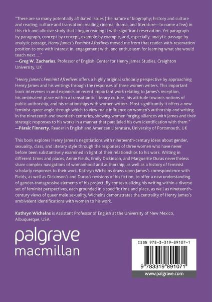 This book explores Henry James's negotiations with nineteenth-century ideas about gender, sexuality, class, and literary style through the responses of three women who have never before been substantively examined in light of their relationships to his work. Writing in different times and places, Annie Fields, Emily Dickinson, and Marguerite Duras nevertheless share complex navigations of womanhood and authorship, as well as a history of feminist scholarly responses to their work. Kathryn Wichelns draws upon James' correspondence with Fields, as well as Dickinson's and Duras's revisions of his fiction, to offer a new understanding of gender-transgressive elements of his project. By contextualizing his writing within a diverse set of feminist perspectives, each grounded in a specific time and place, as well as nineteenth-century views of queer male sexuality, Wichelns demonstrates the centrality of Henry James's ambivalent identifications with women tohis work.