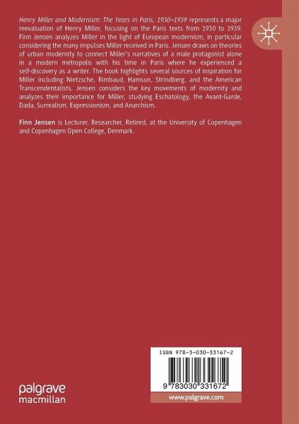 Henry Miller and Modernism: The Years in Paris, 1930-1939 represents a major reevaluation of Henry Miller, focusing on the Paris texts from 1930 to 1939. Finn Jensen analyzes Miller in the light of European modernism, in particular considering the many impulses Miller received in Paris. Jensen draws on theories of urban modernity to connect Miller's narratives of a male protagonist alone in a modern metropolis with his time in Paris where he experienced a self-discovery as a writer. The book highlights several sources of inspiration for Miller including Nietzsche, Rimbaud, Hamsun, Strindberg and the American Transcendentalists. Jensen considers the key movements of modernity and analyzes their importance for Miller, studying Eschatology, the Avant-Garde, Dada, Surrealism, Expressionism, and Anarchism.
