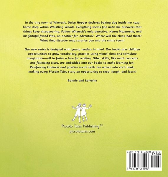 Welcome to the whimsical world of Henry Mozzarella and the Mystery at Whistling Woods, where cheese-loving detective Henry and his loyal companion Max embark on hilarious adventures in the quirky town of Wheresit! Picture your child giggling along as Henry, our mouse detective extraordinaire, uses his wit (and his nose for both cheese and clues!) to solve the latest mystery puzzling the woodland creatures. This delightful chapter book is perfectly portioned for young readers ages 6-8, whether they want to devour it all at once or savor it chapter by chapter. But wait - there's more than just laughs hiding between these pages! Like a sneaky serving of vegetables in a delicious meal, we've cleverly tucked away educational treasures throughout the story. Your little detective will: - Crack mathematical mysteries alongside Henry - Decode new vocabulary words through context clues - Build reading confidence with helpful, vibrant illustrations - Develop problem-solving skills while following the story's clues - Learn valuable social skills through Henry's heartwarming friendships Every Piccolo Tales book is crafted with the perfect blend of entertainment and education. Our recipe? Take one part silly adventure, add a dash of learning, and mix in plenty of positive messages about kindness and friendship. The result? A story that makes reading time the most anticipated part of your child's day! Whether you're cuddled up for bedtime reading or sharing a chapter over afternoon snacks, Henry Mozzarella's adventures create precious moments to connect, laugh, and learn together. Join Henry and Max on their latest mystery - where solving problems is always an adventure, and there's usually cheese involved!