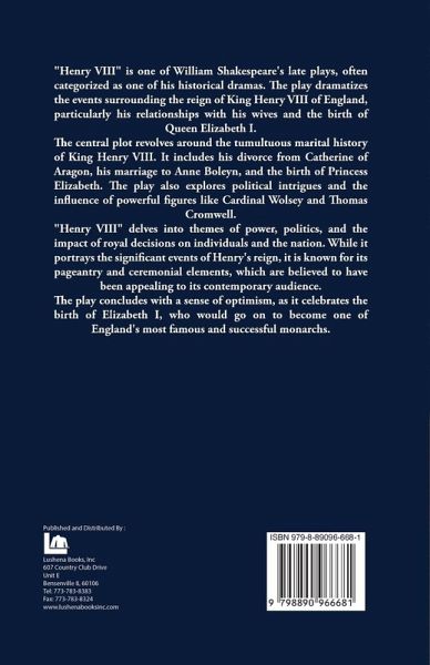The authoritative edition of Henry VIII from The Folger Shakespeare Library, the trusted and widely used Shakespeare series for students and general readers. In Henry VIII, Shakespeare presents a monarchy in crisis. Noblemen battle with Lord Chancellor Cardinal Wolsey, who taxes the people to the point of rebellion. Witnesses whom Wolsey brings against the Duke of Buckingham claim he is conspiring to take the throne, yet Buckingham seems innocent as he goes to his death. Henry is also without a male heir. After meeting the beautiful Anne Boleyn, he says that he suspects his current marriage to Katherine, with whom he has one surviving daughter, is invalid. Katherine, meanwhile, glows with such splendid integrity that actresses have long desired the role. She advocates for the people, suspects the witnesses against Buckingham, and eloquently defends her conduct as Henry's wife.