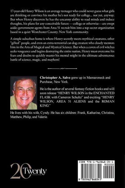 17-year-old Henry Wilson is an average teenager who could never guess what girls are thinking or convince his mother he's not ready for college... not yet, anyway. But when Henry discovers he has the uncanny ability to read minds and induce thoughts, his plans for any conceivable future -college or otherwise-are swept aside; government agents from Area 51 recruit him into a top-secret organization based in a quiet Westchester County, New York community. A simple suburban home is where Henry secretly meets mythical creatures, other "gifted" people, and even an extra-terrestrial cat-dog creature who closely mentors him in the Arts of Magical and Mystical Science. But when a coven of evil witches seeks vengeance and begins destroying the entire nation, Henry must overcome his fears and doubts to quickly master his mental might in the ultimate adventurous battle of science, magic, and mayhem! Christopher A. Salvo grew up in Mamaroneck and Purchase, New York. He is also the author of Henry Wilson and Murphy's Law, to be re-released. He lives with his wife, Cyndy. He has six children: Frank, Katharine, Christina, Matthew, Philip, and Valerie.