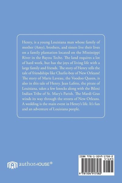 " Henry is a young, handsome, Louisiana man. He lives in St. Mary's Parish, near the city of New Orleans. He lives in his family's Plantation, Idle Wile' on the Bank of the 'Big Muddy, the Mississippi River. The beautiful Bayou Teche' runs through this property as well. Henry's family, living with him on Idle Wile' plantation, are his Mother, Amy, his brothers Noah and Ben, his sisters Madeline and Bella and his Nephew Josh. Henry's four Uncles and Aunts and their families live along the Bank of the Ole' Muddy as well, in five Plantations they have built, with the help of their family, friends and workers. The thousands of arpants, the French word for acres, of land owned by the Arrington Family, was awarded by the Queen of France in a Land Grant for two hundred thousand acres of Prime Louisiana Land. Henry's father, Gustave, worked for the Queen in Translating the English Language into the French Language, for the business of the French Court to understand and apply it's wishes, where Louisiana was concerned."