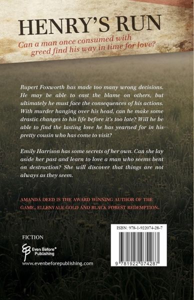 Rupert Foxworth has made too many wrong decisions. He may be able to cast the blame on others, but ultimately he must face the consequences of his actions. With murder hanging over his head, can he make some drastic changes to his life before it's too late? Will he be able to find the lasting love he has yearned for in his pretty cousin who has come to visit? Emily Harrison has some secrets of her own. Can she lay aside her past and learn to love a man who seems bent on destruction? She will discover that things are not always as they seem. Third book in the Jacksons Creek Series, by Australian author Amanda Deed.
