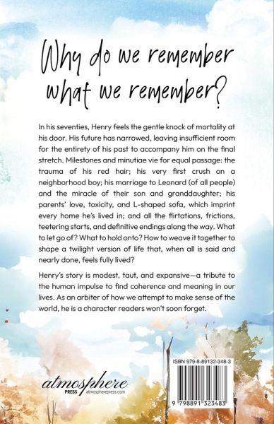 Why do we remember what we remember? In his seventies, Henry feels the gentle knock of mortality at his door. His future has narrowed, leaving insufficient room for the entirety of his past to accompany him on the final stretch. Milestones and minutiae vie for equal passage: the trauma of his red hair; his very first crush on a neighborhood boy; his marriage to Leonard (of all people) and the miracle of their son and granddaughter; his parents' love, toxicity, and L-shaped sofa, which imprint every home he's lived in; and all the flirtations, frictions, teetering starts, and definitive endings along the way. What to let go of? What to hold onto? How to weave it together to shape a twilight version of life that, when all is said and nearly done, feels fully lived? Henry's story is modest, taut, and expansive-a tribute to the human impulse to find coherence and meaning in our lives. As an arbiter of how we attempt to make sense of the world, he is a character readers won't soon forget.