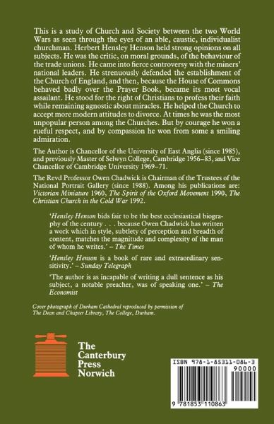 This is a study of Church and Society between the two World Wars as seen through the eyes of an able, caustic, individualist churchman. Herbert Hensley Henson held strong opinions on all subjects. He was the critic, on moral grounds, of the behaviour of the trade unions. He came into fierce controversy with the miners' national leaders. He strenuously defended the establishment of the Church of England, and then, because the House of Commons behaved badly over the Prayer Book, became its most vocal assailant. He stood for the right of Christians to profess their faith while remaining agnostic about miracles. He helped the Church to accept more modern attitudes to divorce. At times he was the most unpopular person among the Churches. But by courage he won a rueful respect, and by compassion he won from some a smiling admiration.