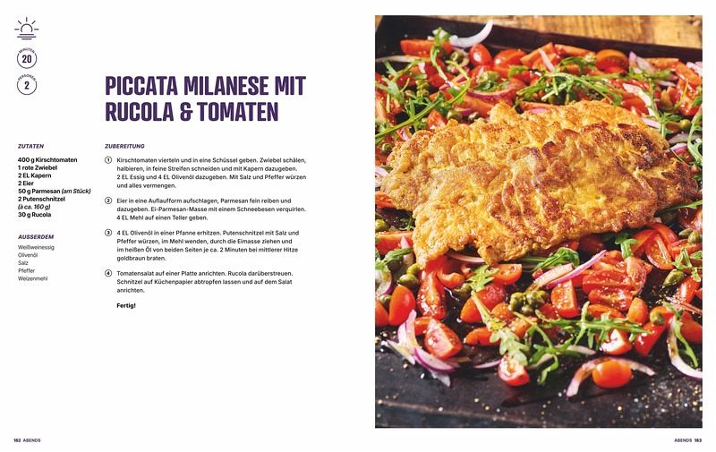 Morgens: Schnelle Power-Gerichte für einen energiereichen Start in den Tag.Mittags: Praktische To-go-Ideen und einfache Homeoffice-Gerichte.Abends: Genussvolle Rezepte, die nach einem langen Tag im Handumdrehen fertig sind.