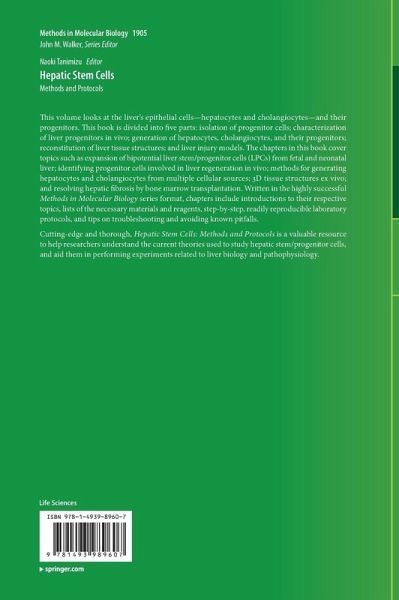 Cutting-edge and thorough, Hepatic Stem Cells: Methods and Protocols is a valuable resource to help researchers understand the current theories used to study hepatic stem/progenitor cells, and aid them in performing experiments related to liver biology and pathophysiology.