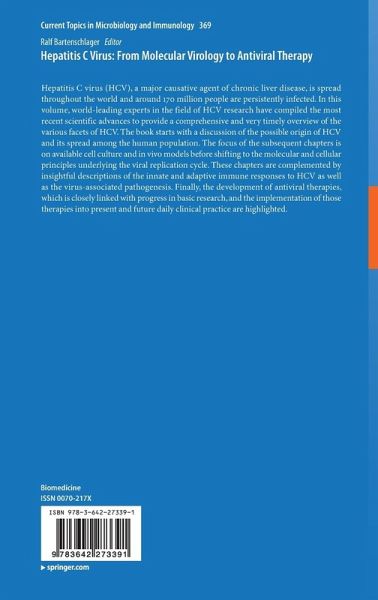 Hepatitis C virus (HCV), a major causative agent of chronic liver disease, is spread throughout the world and around 170 million people are persistently infected. In this volume, world-leading experts in the field of HCV research have compiled the most recent scientific advances to provide a comprehensive and very timely overview of the various facets of HCV. The book starts with a discussion of the possible origin of HCV and its spread among the human population. The focus of the subsequent chapters is on available cell culture and in vivo models and then concentrates on the molecular and cellular principles underlying the viral replication cycle. These chapters are complemented by insightful descriptions of the innate and adaptive immune responses against HCV as well as the virus-associated pathogenesis. Finally, the development of antiviral therapies, which is closely linked with progress in basic research, and their implementation into present and future daily clinical practice are highlighted.