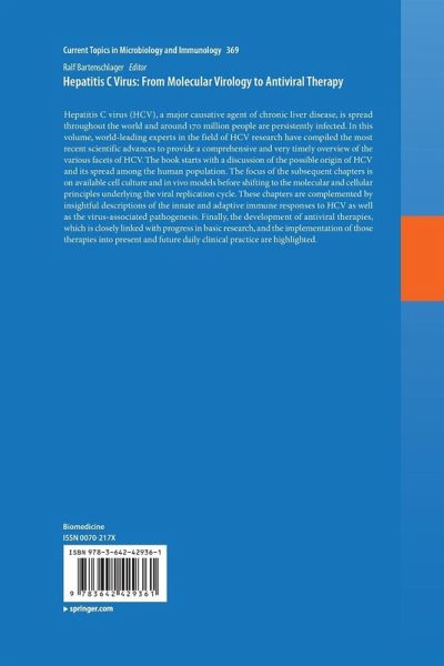 Hepatitis C virus (HCV), a major causative agent of chronic liver disease, is spread throughout the world and around 170 million people are persistently infected. In this volume, world-leading experts in the field of HCV research have compiled the most recent scientific advances to provide a comprehensive and very timely overview of the various facets of HCV. The book starts with a discussion of the possible origin of HCV and its spread among the human population. The focus of the subsequent chapters is on available cell culture and in vivo models before shifting to the molecular and cellular principles underlying the viral replication cycle. These chapters are complemented by insightful descriptions of the innate and adaptive immune responses to HCV as well as the virus-associated pathogenesis. Finally, the development of antiviral therapies, which is closely linked with progress in basic research, and the implementation of those therapies into present and future daily clinical practice are highlighted.
