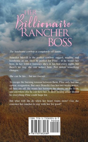 The handsome cowboy is completely off limits... Benedict Merrill is the perfect cowboy: rugged, wealthy, and handsome as sin. He'd be perfect for Pilar... if he wasn't her boss. In her wildest fantasies she's in his bed every night, but there's no way she can seduce him. Not unless something changes. She can be his... but not forever... To escape the burning tension between them, Pilar only has one option: resignation. But once Benedict has her two weeks notice, all bets are off. He wants her between the sheets, on the floor, and anywhere else he can have her. A short steamy affair should be everything Pilar could hope for. But what will she do when her heart wants more? Can she convince her rancher to stay with her for good?