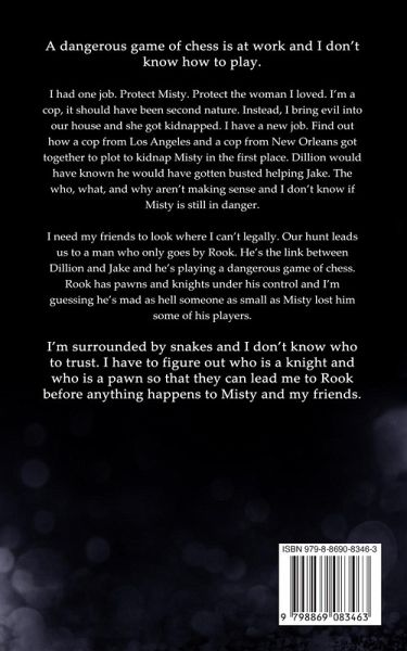 A dangerous game of chess is at work and I don't know how to play. had one job. Protect Misty. Protect the woman I loved. I'm a cop, it should have been second nature. Instead, I bring evil into our house and she got kidnapped. I have a new job. Find out how a cop from Los Angeles and a cop from New Orleans got together to plot to kidnap Misty in the first place. Dillion would have known he would have gotten busted helping Jake. The who, what, and why aren't making sense and I don't know if Misty is still in danger. I need my friends to look where I can't legally. Our hunt leads us to a man who only goes by Rook. He's the link between Dillion and Jake and he's playing a dangerous game of chess. Rook has pawns and knights under his control and I'm guessing he's mad as hell someone as small as Misty lost him some of his players. I'm surrounded by snakes and I don't know who to trust. I have to figure out who is a knight and who is a pawn so that they can lead me to Rook before anything happens to Misty and my friends.